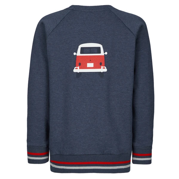 Sein optisches Highlight ist sicherlich der VW-Bulli, welcher sich gekonnt in vorder und hinter Ansicht präsentiert. Aber auch sein hübsch meliertes Gewebe und die farblich abgesetzten Rippstrick-Bündchen können sich sehen lassen. Diese sorgen gleichzeitig für einen besseren Sitz und leichtes an- und ausziehen.