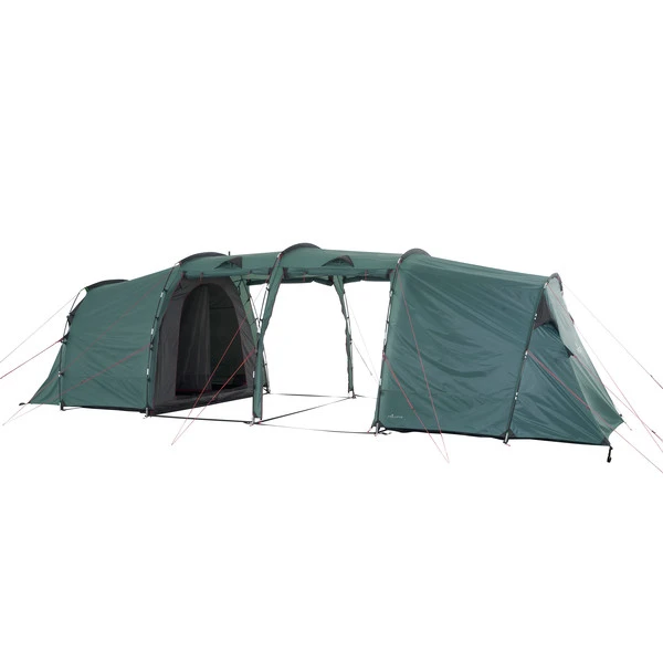 Werden beide Innenzelte ausgehängt, kann das verbleibende Überzelt als Zelt für z. B. Gartenpartys dienen. Vier Eingänge, die teilweise hochgestellt werden können, bieten nicht nur eine gute Aussicht, sondern mit den acht weiteren Lüftern auch eine optimale Raumbelüftung. Die Fenster stellen jedoch auch bei geschlossenen Eingängen eine gute Sicht nach draußen bereit.