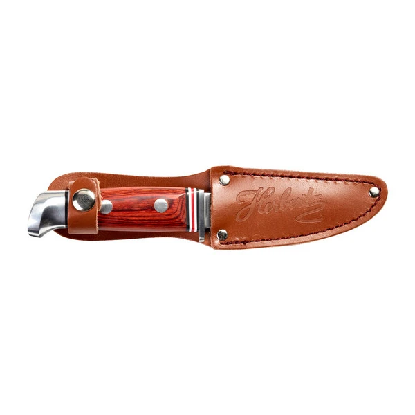 Der Griff passt genau für Kinderhände. Und es kann stolz in der schicken Lederscheide am Gürtel herumgetragen werden. (Haben wir schon erwähnt, dass es das ERSTE MESSER ist?)