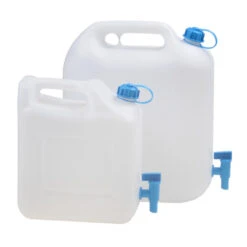 Robuster Wasserkanister in zwei Größen. Das naturfarbene Material ist bruchsicher und geschmacksneutral. Ideal zum (motorisierten) Transport von ausreichend Trinkwasser. Und gut dosierbar dank Hahn.