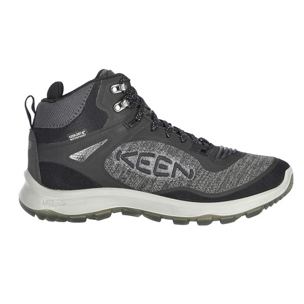 Zehen und Ferse sind mit schützenden Verstärkungen aus TPU versehen und verleihen dem Terradora Mid WP zusätzlich Stabilität. Im unteren Bereich ist das Obermaterial rundum mit einer PU-Beschichtung versehen und macht es dadurch deutlich unempfindlicher gegenüber äußeren Einflüssen. Zusätzlich ist der Schuh wasserdicht: Dafür steht das WP (Waterproof) im Namen. Die atmungsaktive Keen.Dry Membran sorgt bei all deinen Aktivitäten für ein ausgeglichenes Fußklima und natürlich trockene Füße!