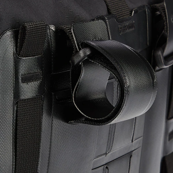 Das Accessory-Pack hat vier Schlaufen, passend zu den Leichtmetallhaken des Handlebar-Pack. Damit lässt sich diese Tasche mit der größeren Lenkertasche mühelos und sicher verbinden.
