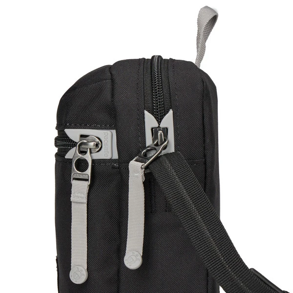 - eXomesh Slashguard: Ein unsichtbares Edelstahlgewebe schützt die Tasche vor dem Aufschlitzen.