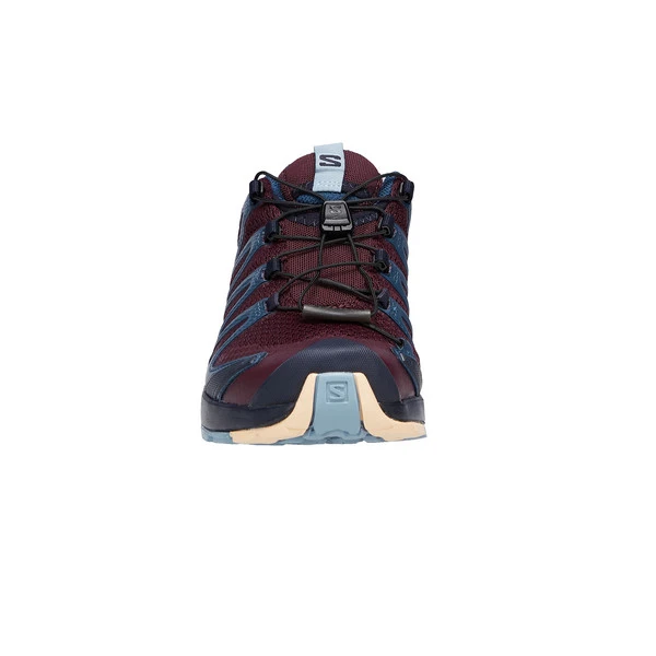 Das ist der XA Pro 3D V8 von Salomon. Aus schnell trocknendem, luftigem Mesh und stabilisierendem TPU-Verstärkungen. Innen leicht gepolstert und mit synthetischem Futter ausgestattet. Für angenehmes Auftreten und gut klimatisierte Füße. Die verdeckt eingearbeitete Zunge verhindert das Eindringen störender Kleinstteilchen.